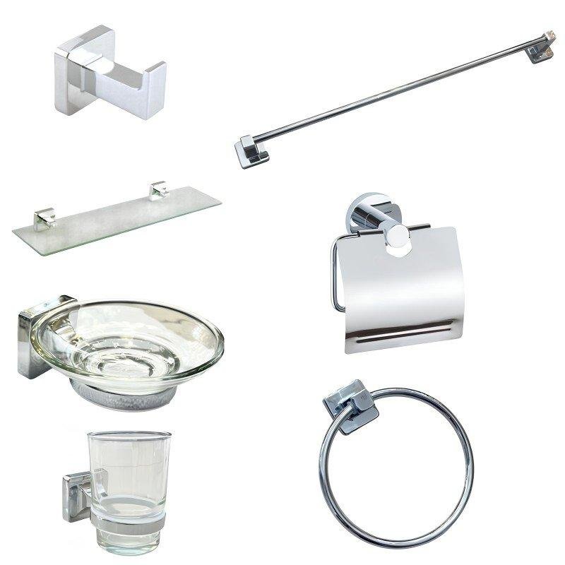 SIENA 7-Piece Chrome Bathroom Accessory Set - Luxurious Zinc Alloy, Stainless Steel & Glass Finish