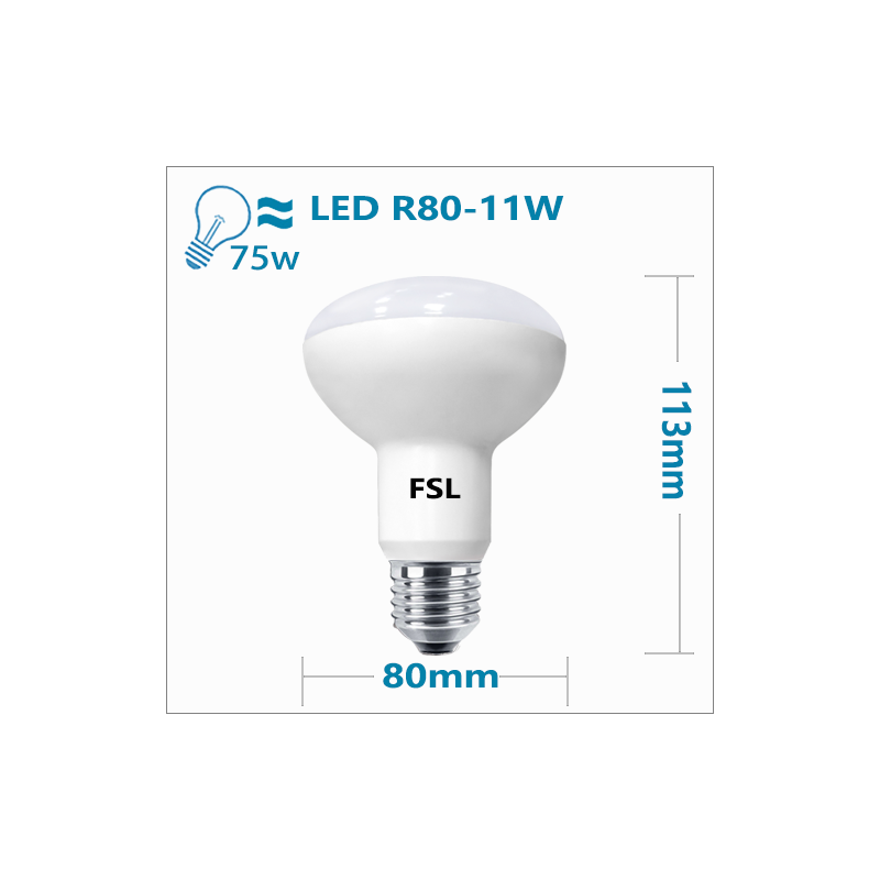 FSL R80 LED Lamp - 11W, White Light, E27 Base, Wide Beam Angle, Instant Start
