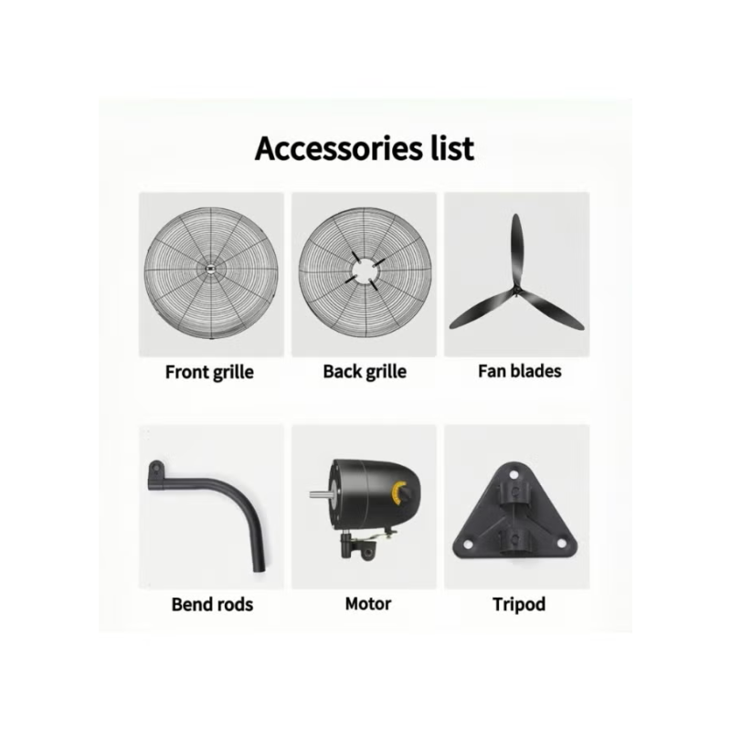 - What's In The Box: The package includes: fan guard/blades/support wall/base/motor